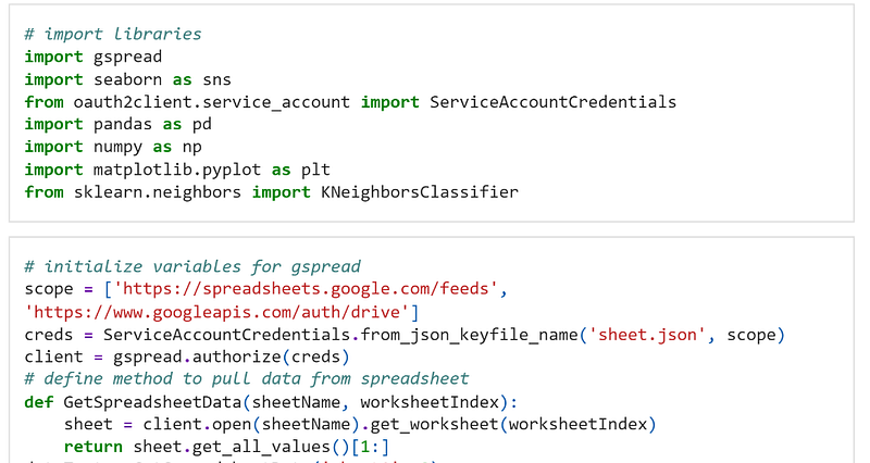 To connect the Google Form with the Python code, we first had to set up the form and configure it to send the collected data to a Google Sheet. Once the form was set up, we used the gspread library, which is a Python client library for the Google Sheets API, to access and manipulate the data in the Google Sheet.